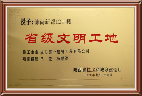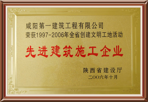 省建設(shè)廳授予的陜西省創(chuàng)建文明工地先進企業(yè)